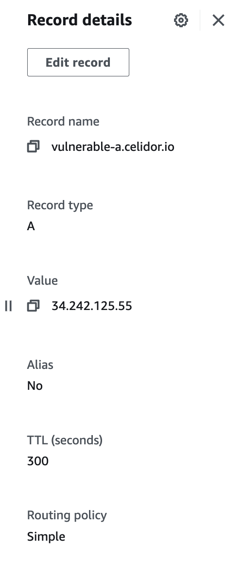 "service": "EC2"not already in use within the organisation - create A record pointing to IP address in Route53
